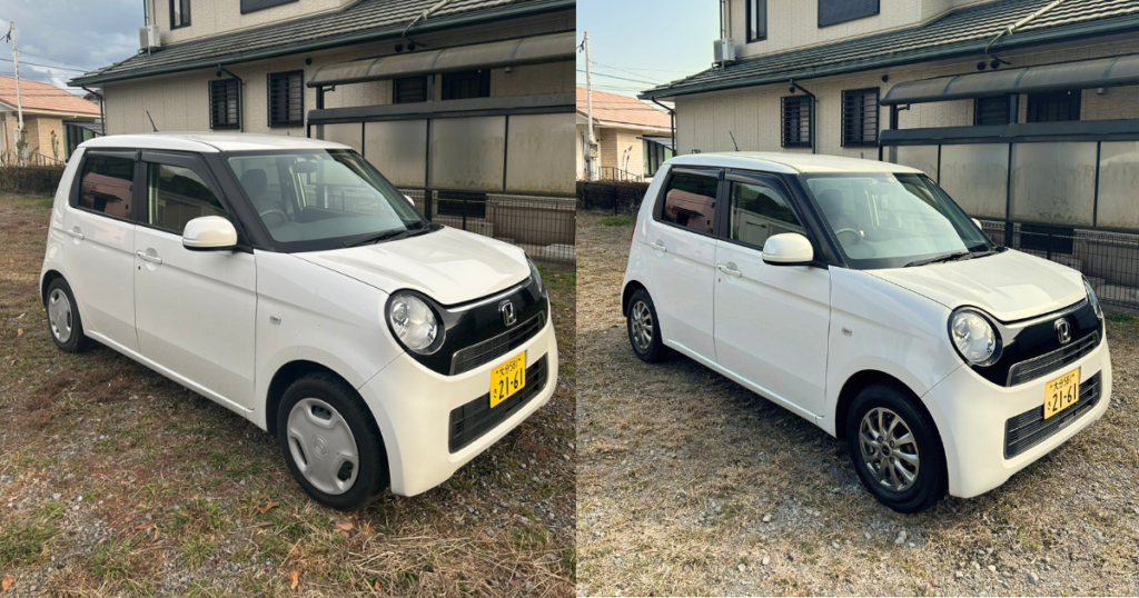 この2台は同一の訪問車両です。違いはタイヤで、左が通常時のノーマル仕様、右はスタットレス仕様です。この辺は、通年12月~2月にかけて2~3回は寒波で路面が凍ったり、積雪のためにノーマル仕様の車両では訪問できない日があります。 少し荒い画像ですが...
