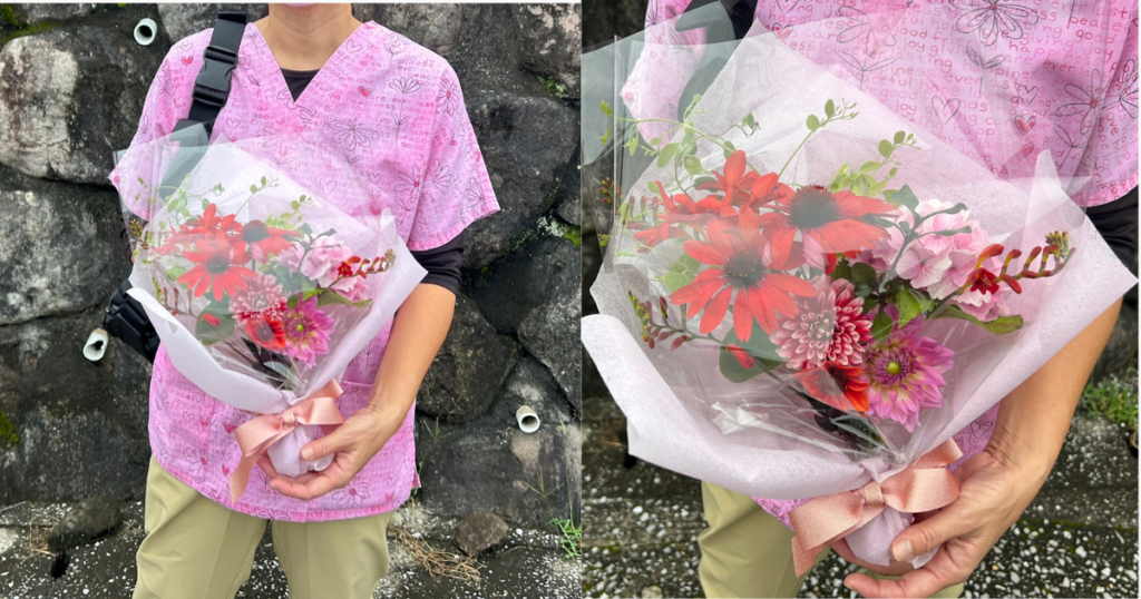 本日はとある利用者様の誕生日です。青空では、これまで利用者様の誕生日にささやかながらプレゼントを贈呈していました。今までは日用品や嗜好品等を購入していましたが、今回からは自家製の花束を贈呈することになりました。年中、ステーションの敷地内...