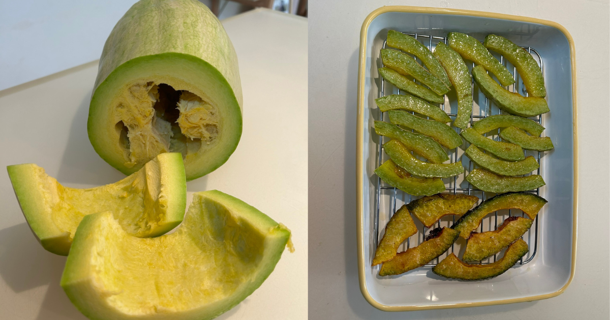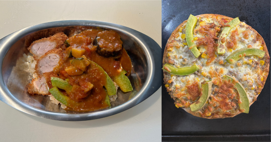 支援者様よりズッキーニをいただきました。まるでカボチャのような大きさです。カボチャみたいなのでカボチャのスライスと一緒にズッキーニも素揚げにしました。