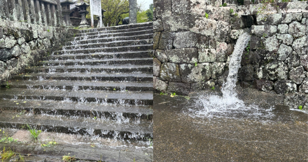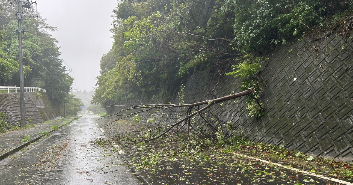 2024年8月29日、30日にかけて大分県杵築市に台風が通過しました。29日はまだ最接近ではありませんでしたが、雨が強く警報もレベル4の避難指示が発令されていました。訪問の道中、倒木で片側車線が塞がれていました。